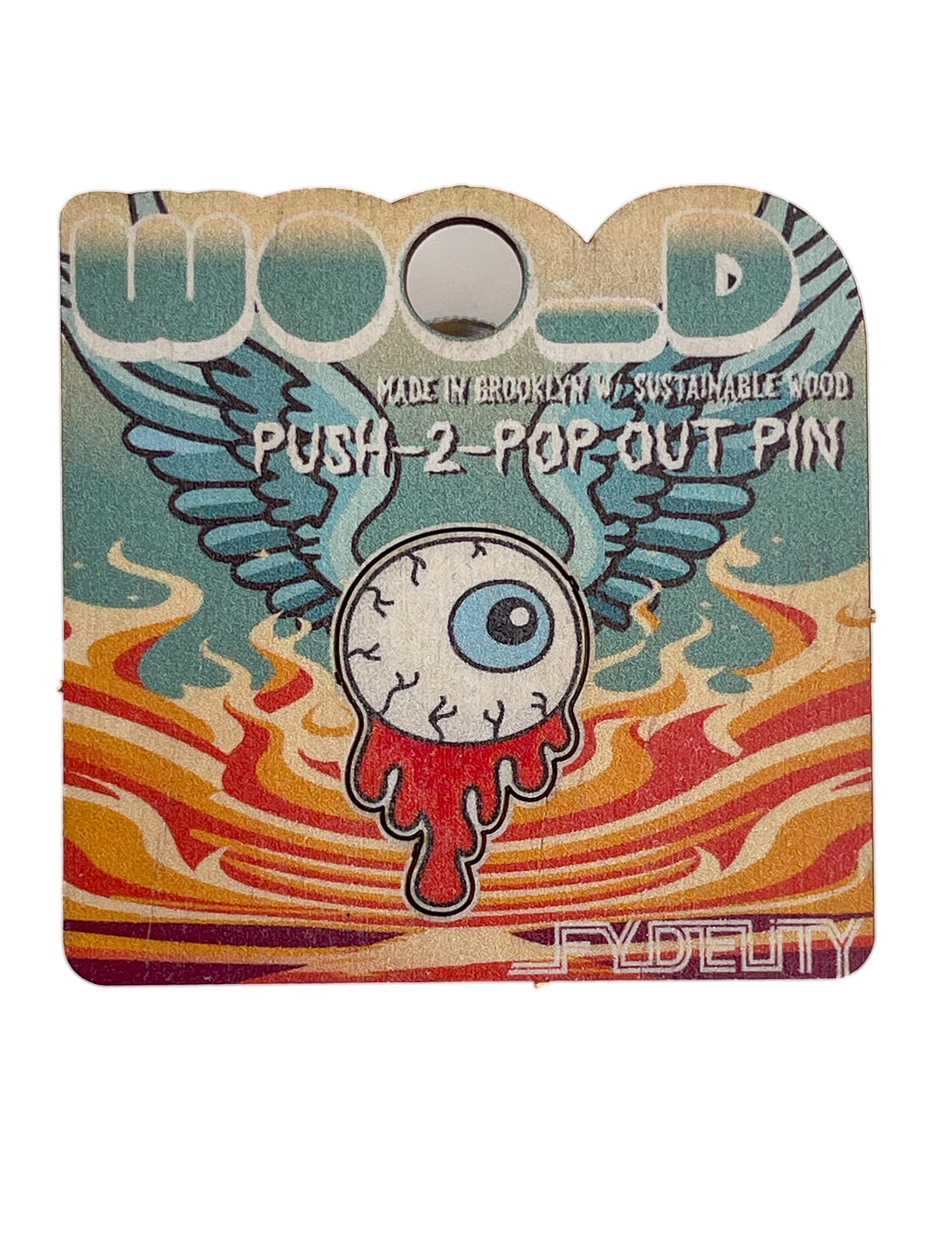 Printed Wood Pin with butterfly backing. Sustainably Made in Brooklyn NYC with 100% Sustainable Wood Grown in the USA. Unique Push-2-Popª Design creates a beautiful zero-packing product.