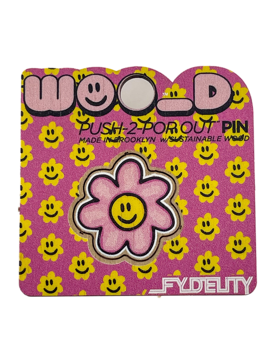 Printed Wood Pin with butterfly backing. Sustainably Made in Brooklyn NYC with 100% Sustainable Wood Grown in the USA. Unique Push-2-Popª Design creates a beautiful zero-packing product.