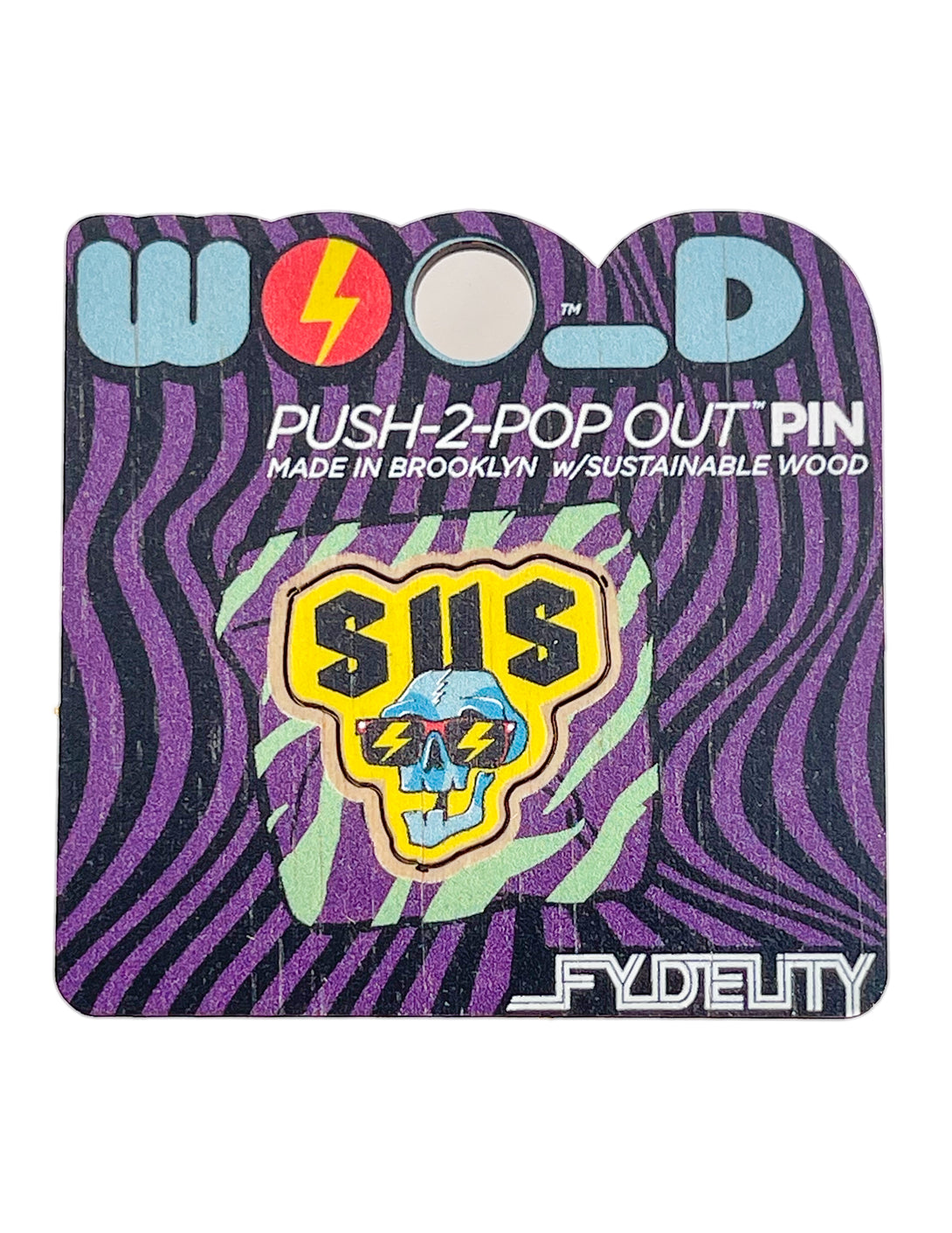 Printed Wood Pin with butterfly backing. Sustainably Made in Brooklyn NYC with 100% Sustainable Wood Grown in the USA. Unique Push-2-Popª Design creates a beautiful zero-packing product.
