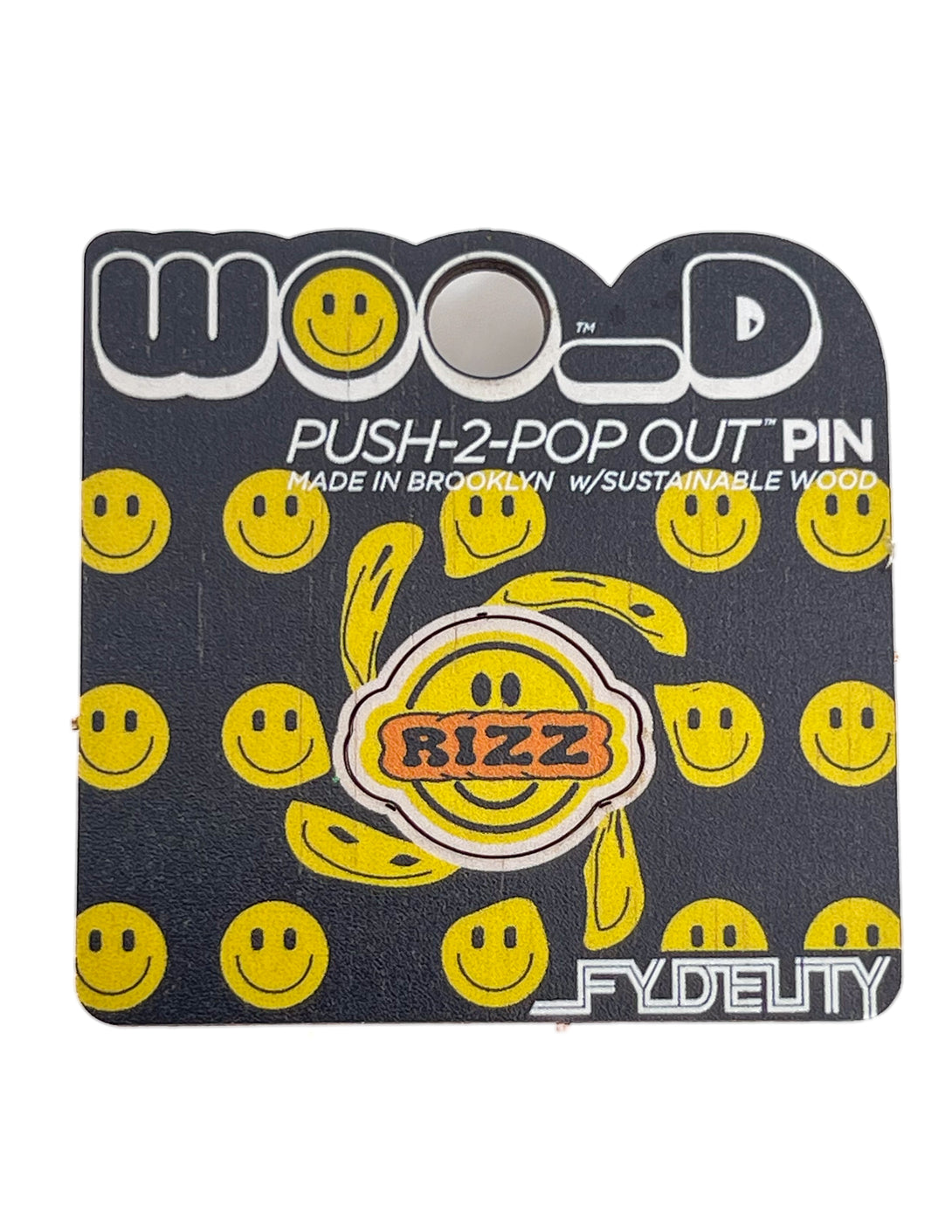 Printed Wood Pin with butterfly backing. Sustainably Made in Brooklyn NYC with 100% Sustainable Wood Grown in the USA. Unique Push-2-Popª Design creates a beautiful zero-packing product.