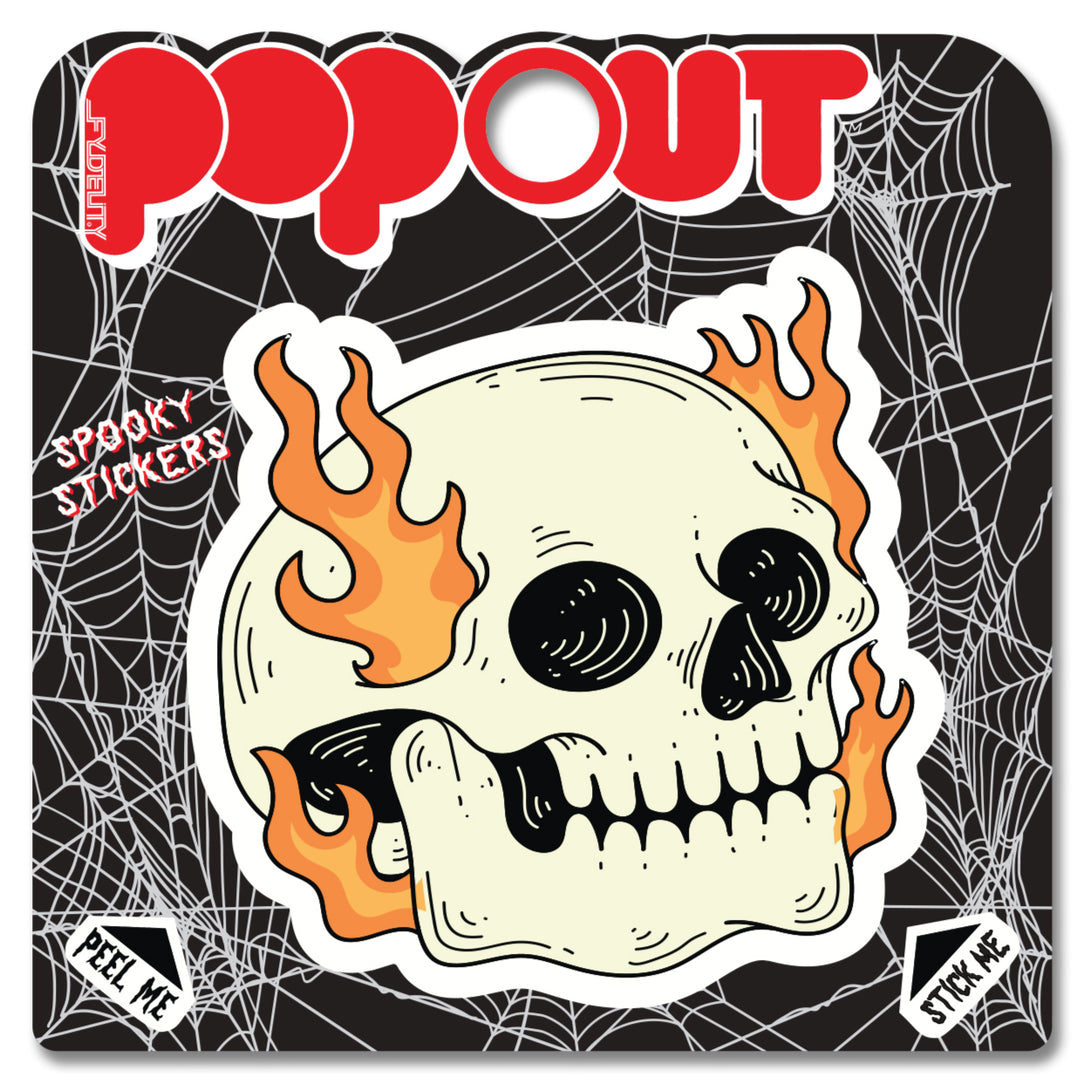 Ignite your gear with this flaming skull sticker. Bold gothic flames and bone details make it perfect for Halloween, spooky decor, or monster-themed collections. UV-printed on 3x3" vinyl, it sticks strong indoors or outdoors. A must-have goth sticker for laptops, skateboards, and haunted gear. |