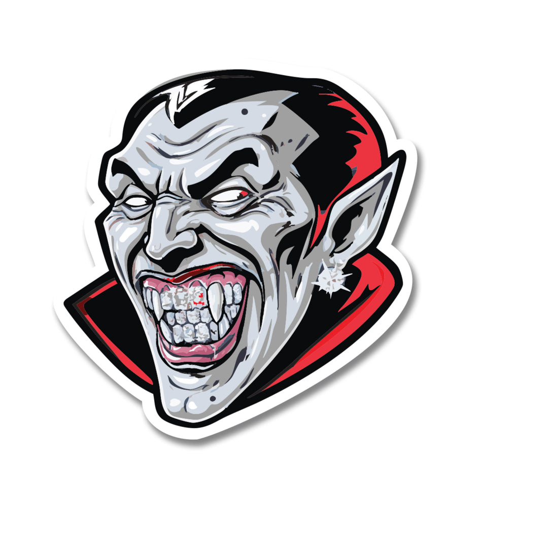 Bring dark royalty to your gear with this vampire lord sticker. Rich black and crimson design screams Halloween monster chic. The 3x3" UV-printed vinyl sticks strong on water bottles, laptops, and gothic room decor. |