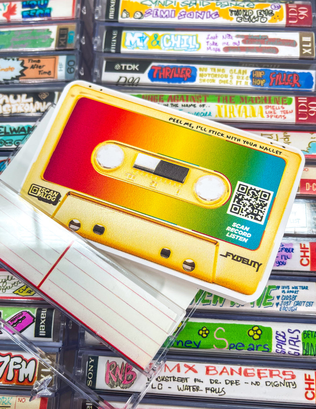 Turn a Fydelity cassette wallet into a reel Digital Mixtape experience. It’s easy. Add the Scanalog stickers, scan the QR code, build their 8-track mix, and craft a portable personal soundtrack that gives good vibes.