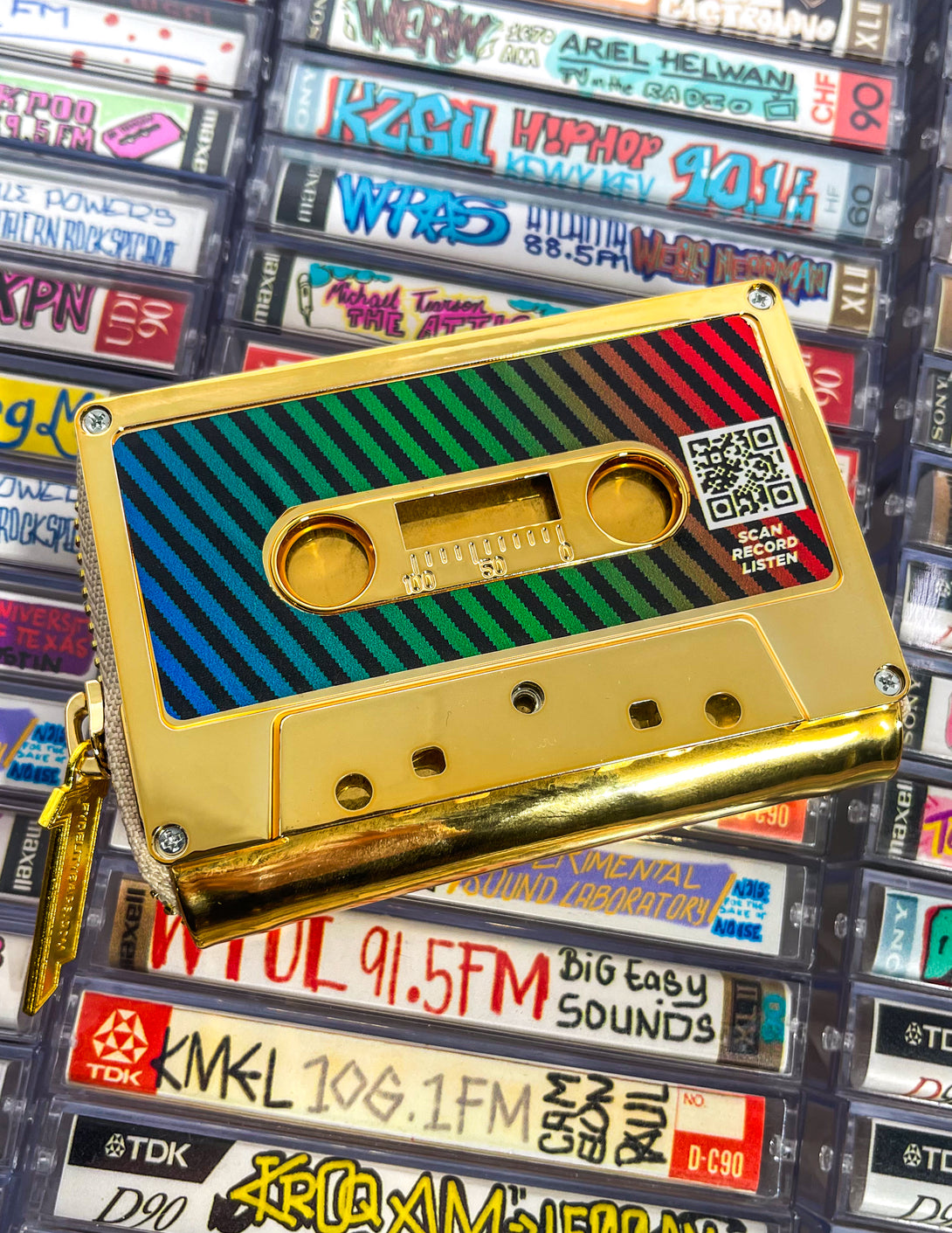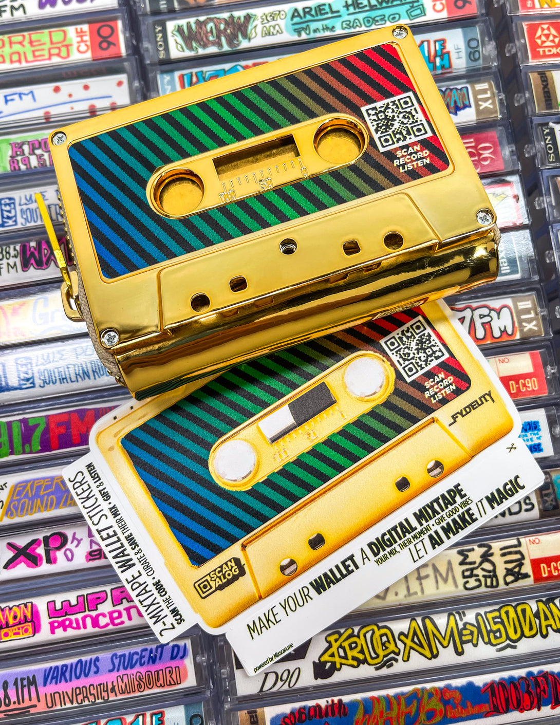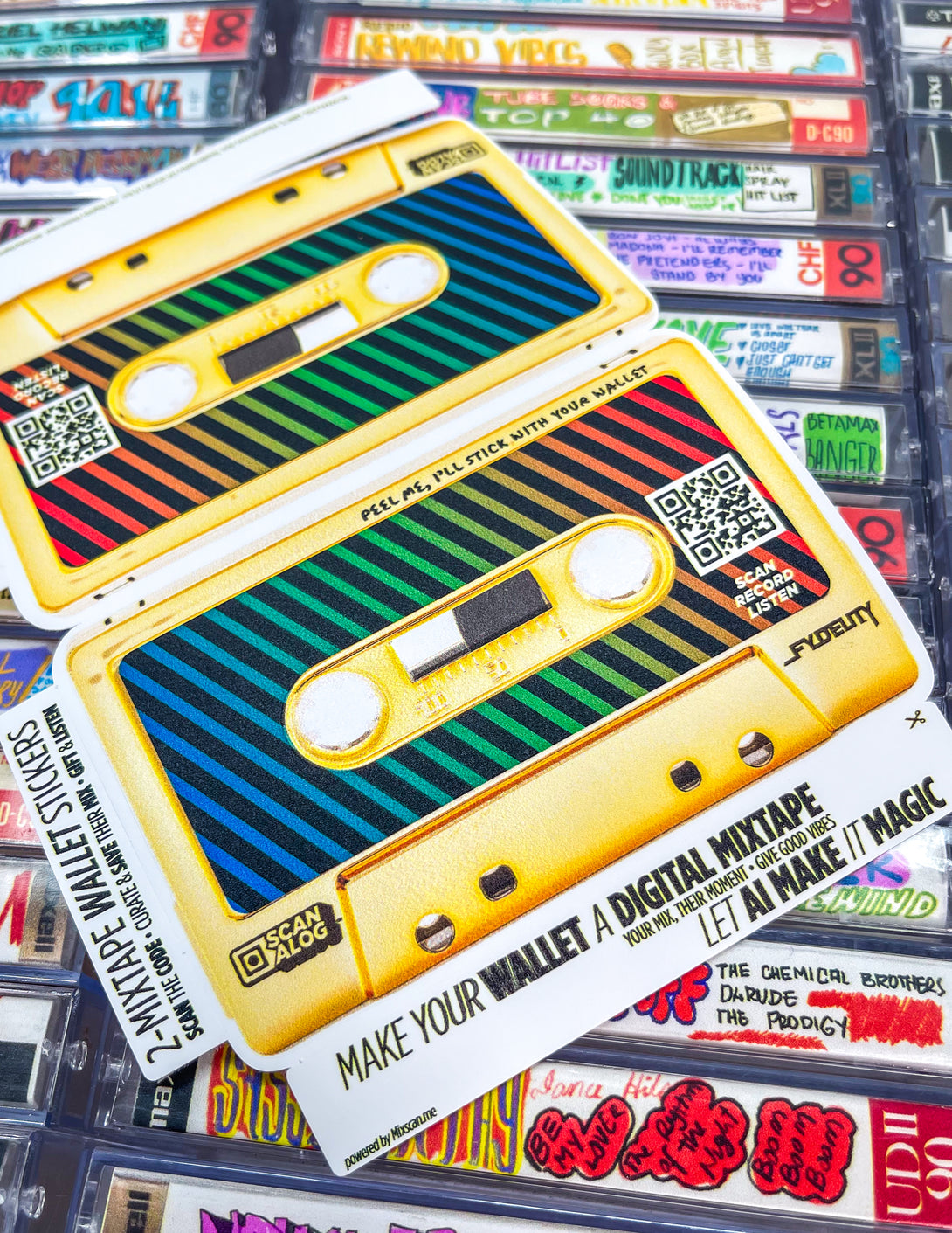 Turn a Fydelity cassette wallet into a reel Digital Mixtape experience. It’s easy. Add the Scanalog stickers, scan the QR code, build their 8-track mix, and craft a portable personal soundtrack that gives good vibes.