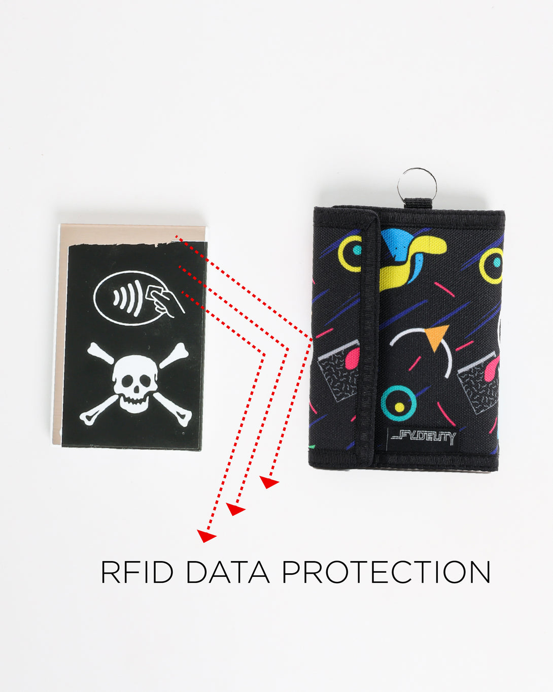 Whoa, like, FYDELITY’s 80’s RFID Data Protection Wallet is totally a game-changer, man. It’s got all the space-age vibes you need to keep your cards and cash safe while you’re out there shredding the gnar or just vibin’ at the food court.